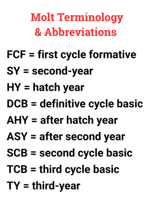 Another "same-bird" issue involves whether or not a vagrant bird observed one year is the same as one in the same location in past years. For most birds, including all passerines, the prebasic molt is complete, and so we cannot rely on notches and patterns of individual feathers. We can make suppositions based on age, however. There are many cases, for example, of such species as Thick-billed Kingbirds, Greater Pewees, and Grace's Warblers, vagrants in California, seen in one winter as FCFs (HY/SYs), returning the following winter to the same location as DCBs (AHY/ASYs), and thus being considered the same bird. Detailed digital imagery now allows us to age these birds in the field, helping with this assessment (see here for an example of this involving a Grace's Warbler). In other cases, in species without complete prebasic molts, we can sometimes rely on replaced and retained feathers, providing even more support for a same-bird scenario.