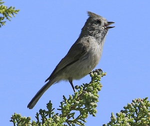 A Juniper Titmouse perched on a juniper of course! Photo by Mark Watson.