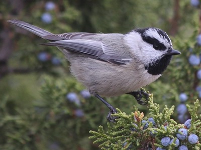 A Mountain Chickadee in a juniper. Photo by J.N. Stuart.